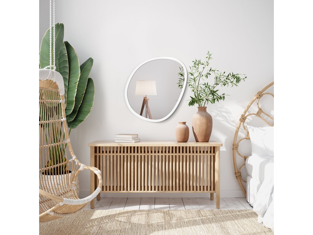 Zrcadlová tabule je umístěna v tenkém rámu, který může být vyroben z dvojitě olejované překližky z tvrdého dřeva nebo voděodolné MDF desky lakované vícesložkovým lakem. Vzadu jsou věšáky. Zrcadlo je vyrobeno na objednávku.