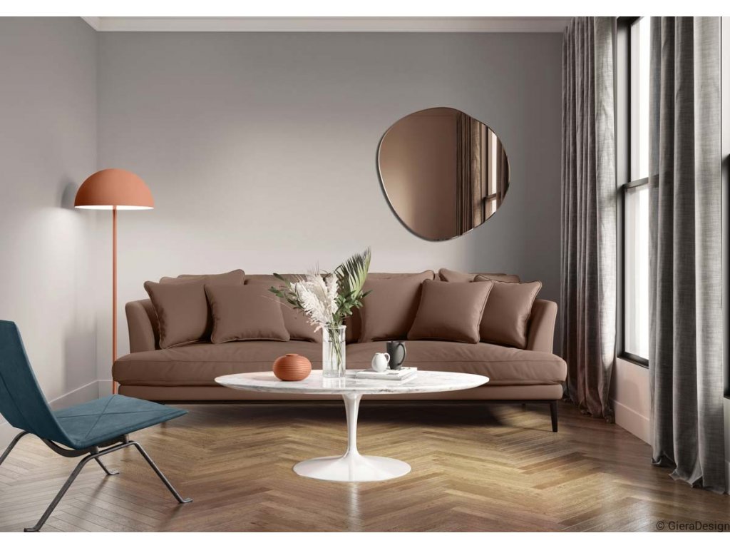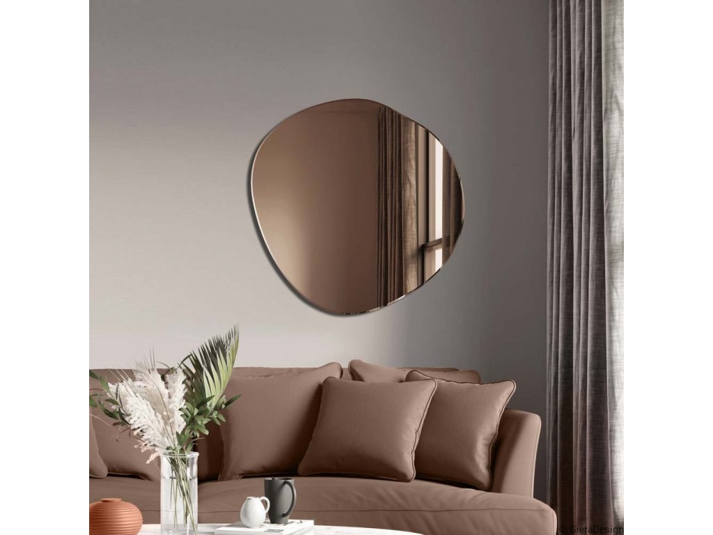 Zrcadlo kouřově hnědé barvy. Barevná zrcadla jsou v současnosti hitem, neboť oživují každý interiér. Výhodou zrcadla je také jeho zajímavý organický tvar, který dokonale zapadá do současných trendů interiérového designu. Je ideální pro moderní interiéry a interiéry zařízené v eklektickém stylu. Zrcadlo Lapis bude zaručeně krásnou dekorací obývacího pokoje, jídelny nebo ložnice.