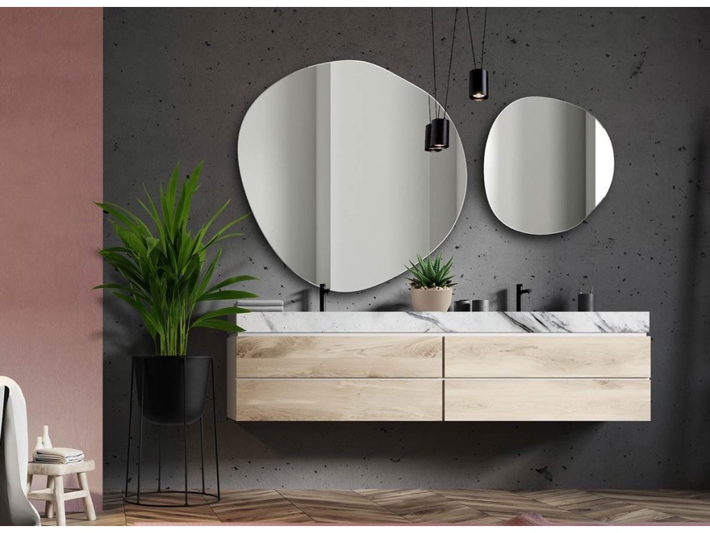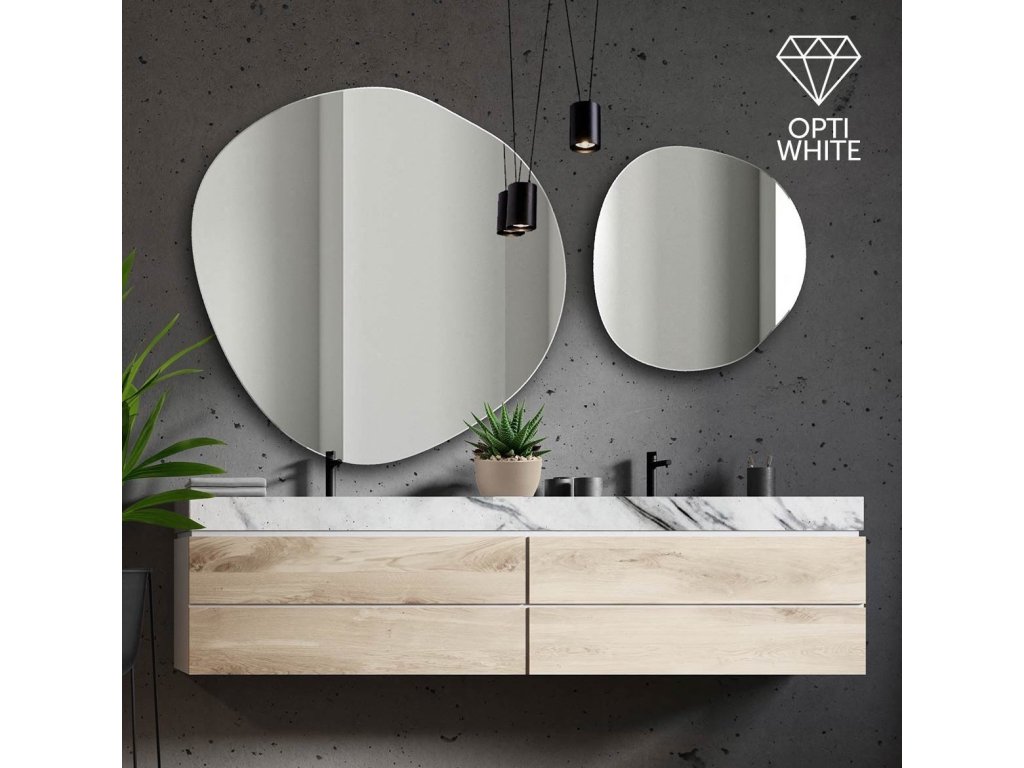 Velké dekorativní zrcadlo s nepravidelným zaobleným tvarem se ideálně se hodí do moderních interiérů designových v eklektickém stylu. Toto zrcadlo bude originální výzdobou obývacího pokoje, chodby nebo koupelny. Okraje zrcadla jsou broušené a leštěné, na zadní straně jsou namontovány úchyty. Možnost objednat zrcadlo bez háčků, na lepení. Náš tip: Zkombinováním dvou zrcadel, například větší s menším získáte ještě zajímavější dekorativní efekt. Zrcadlo je vyrobeno z nejkvalitnějších zrcadel Opti white . Jde o mimořádně čisté, super bílé zrcadlo s mnohem vyšší transparentností skla. Zrcadla Opti white mají nižší obsah železa, což umožňuje odstranit typické zelenkavé zabarvení skla. Zrcadla jsou téměř bezbarvé, mají mnohem vyšší propustnost světla, zajišťují věrnost barev. Mají jasnější odraz a určitě světlejší okraje. Zrcadlo se zhotovuje na zakázku, je možné vyrobit i jiný rozměr. Zrcadla jsou vyrobeny z těch nejkvalitnějších belgických zrcadel s vysokou propustností a leskem. Broušení a leštění hran je prováděno na kvalitních italských strojích pro zpracování skla.Doplňkové parametry