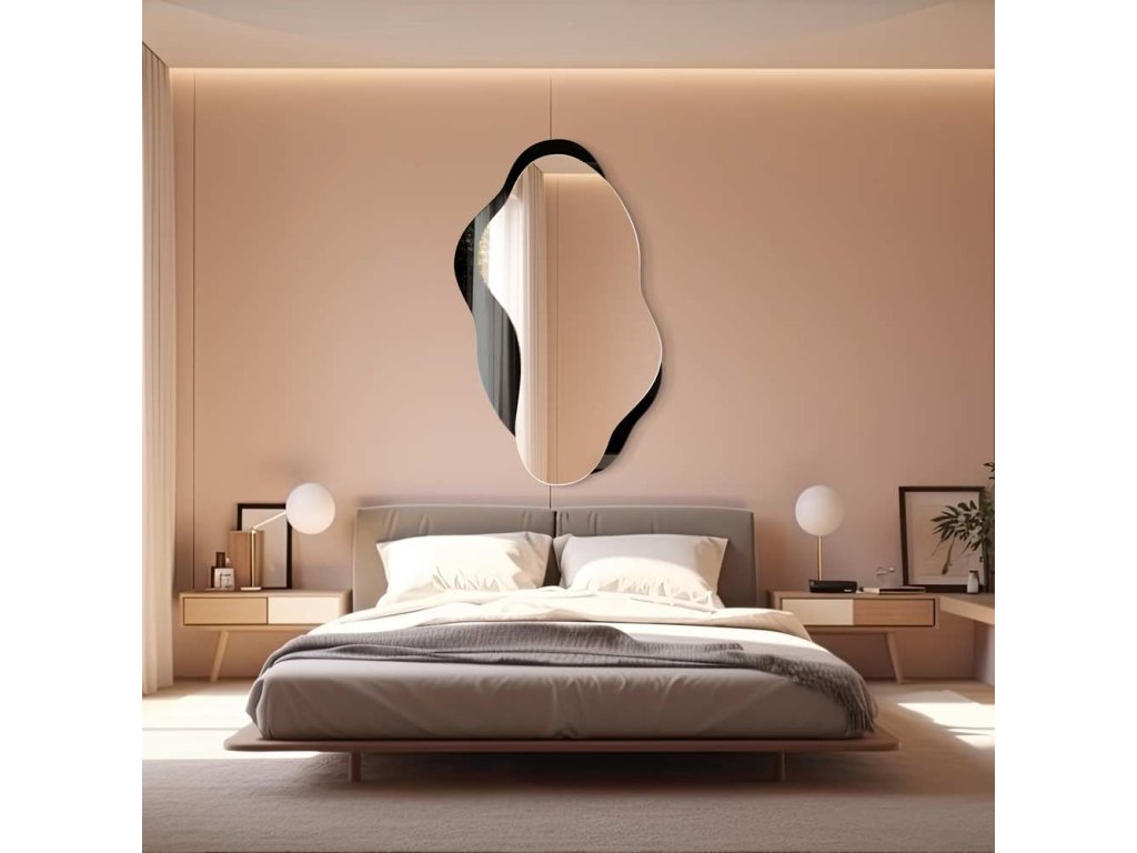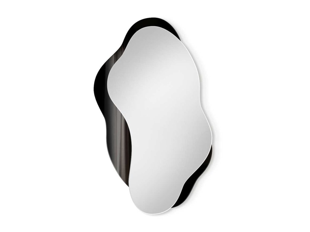 - Nepravidelný rám zrcadla Libido je vyroben z černého skla Lacobel. Jeho okraje jsou broušené a leštěné. Černá barva se při mytí neodírá ani nepoškrábe. Toto zrcadlo je vhodné i do koupelny.