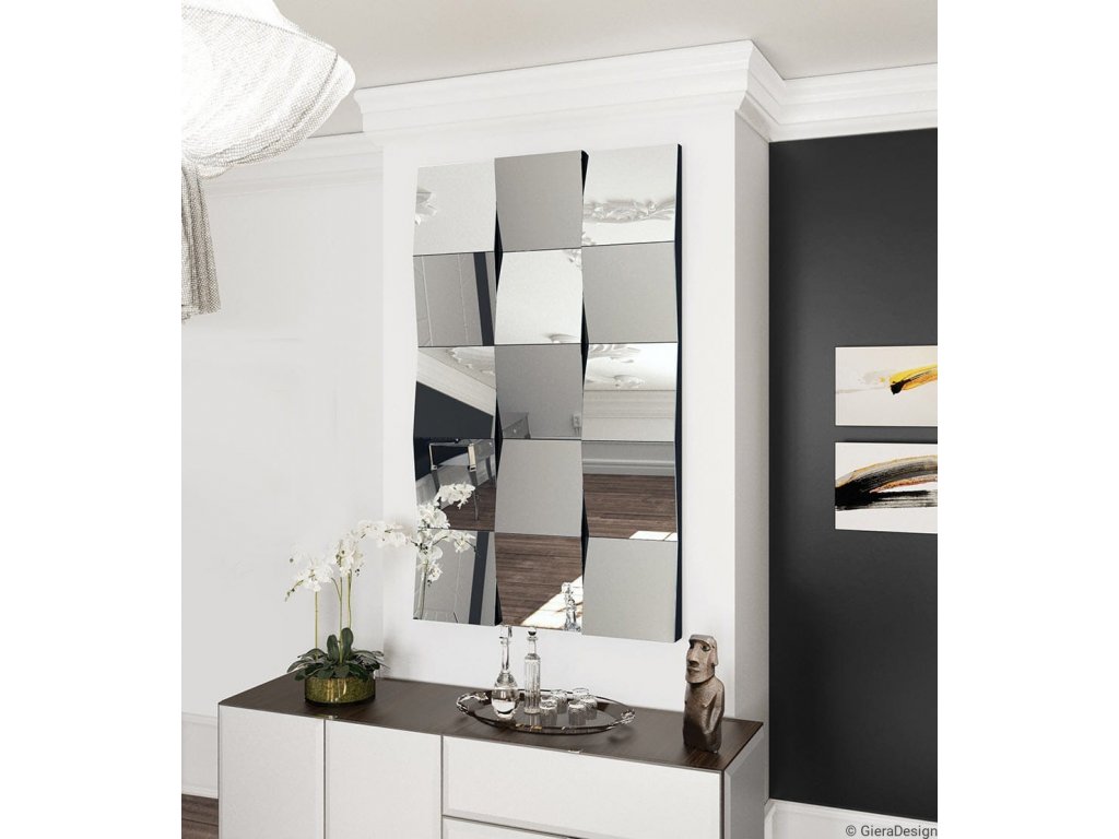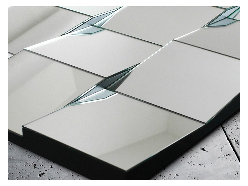 Originální mnohotvárné zrcadlo s unikátním designem. Skládá se z patnácti menších zrcadel. Ideálně se hodí k výzdobě obývacího pokoje, jídelny či ložnice. Odráží světlo v různých úhlech, díky čemuž opticky zvětšuje interiér. Zrcadlo je zajištěno teflonem, který ho chrání před korozivním účinkům vlhkosti - vhodné i do koupelny. Leštěné okraje zrcadla jsou samozřejmostí. Zrcadlo lze zavěsit horizontálně i vertikálně. Úchyty jsou zapuštěny do zadní části tak, aby zrcadlo nevyčnívalo od stěny. Zrcadlo se zhotovuje na zakázku, je možné vyrobit i jiný rozměr.