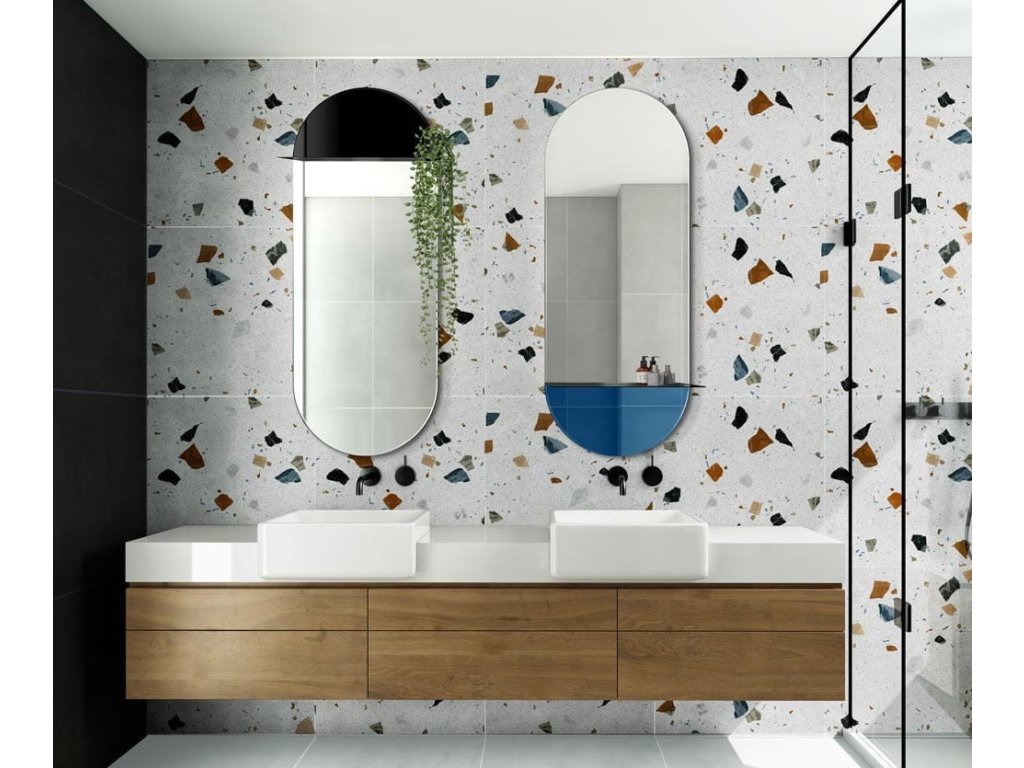 Moderní koupelnové zrcadlo ze sbírky zrcadel Novi je fúzí barev a materiálů. Kombinuje zrcadla s různými barvami a vzory. Hlavní část tohoto modelu je vyrobena z kvalitních belgických zrcadel a je doplněna barevným zlatým zrcadlem. Tyto dvě zrcadla mezi sebou odděluje kovová černá polička. Zrcadlo Abbie Novi 2 Gold lze zavěsit způsobem, kdy se bude polička nacházet ve spodní části zrcadla - poskytuje prostor například pro koupelnové doplňky, nebo v horní části zrcadla - například pro Vaše dekorace. Zrcadlo je dostupné ve více barevných provedeních. Zrcadlo se zhotovuje na zakázku, je možné vyrobit i jiný rozměr. Zrcadla jsou vyrobeny z těch nejkvalitnějších belgických zrcadel s vysokou propustností a leskem. Broušení a leštění hran je prováděno na kvalitních italských strojích pro zpracování skla. Zrcadlo má věšáky na zadní straně.Doplňkové parametry