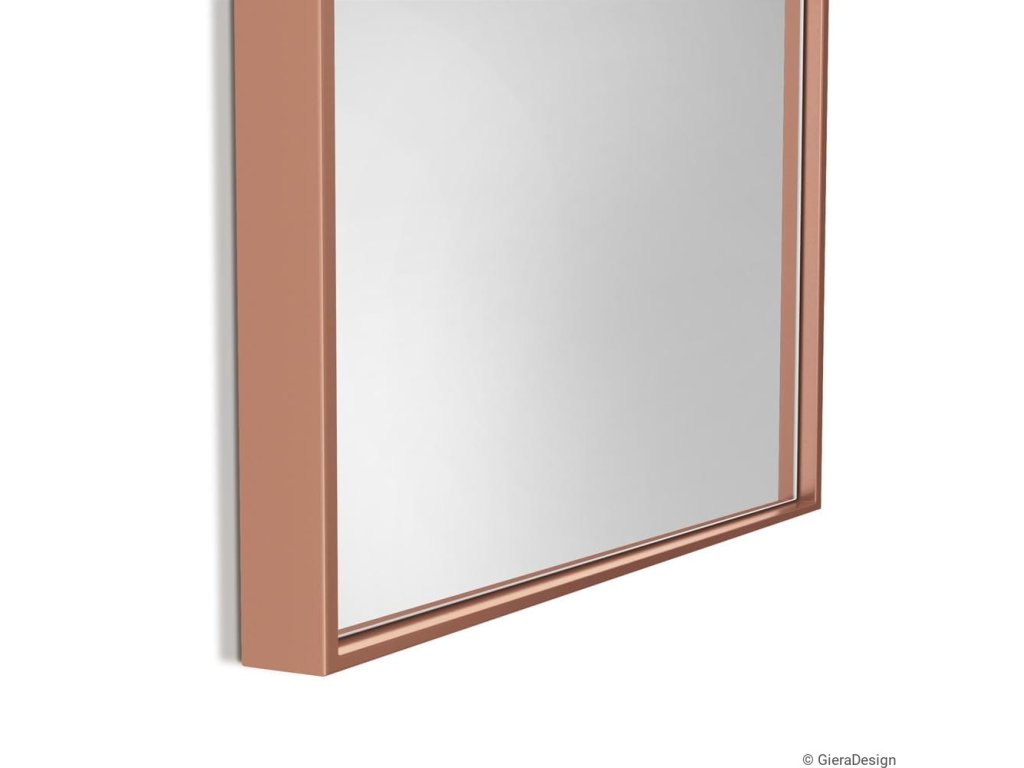 Rám je vyroben z voděodolné MDF desky lakované tvrdým dvousložkovým polyuretanovým lakem. V zadní části úchyty pro připevnění ke stěně, aby bylo zrcadlo stabilní a bezpečné. Zrcadlová tabule je ze zadní strany dodatečně zajištěna výztužnou fólií, která zvyšuje pevnost zrcadla a v případě rozbití drží jeho kousky v rámu.