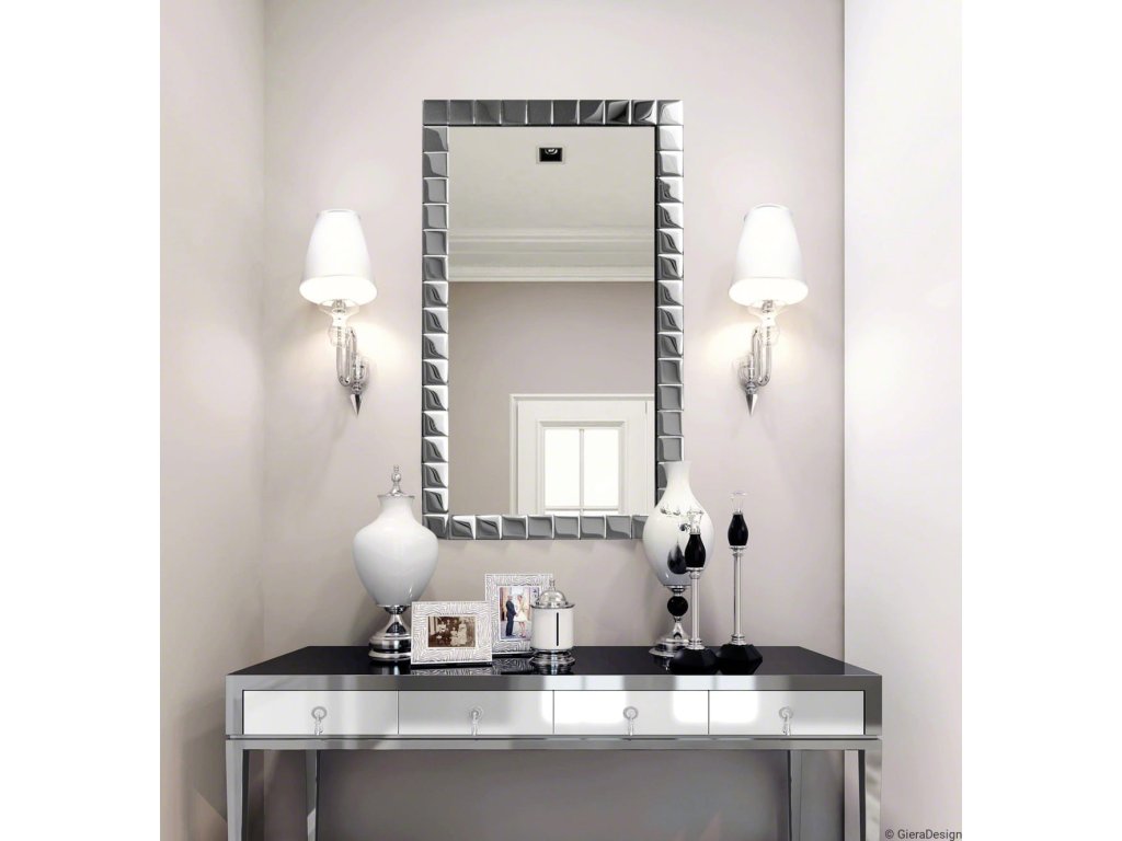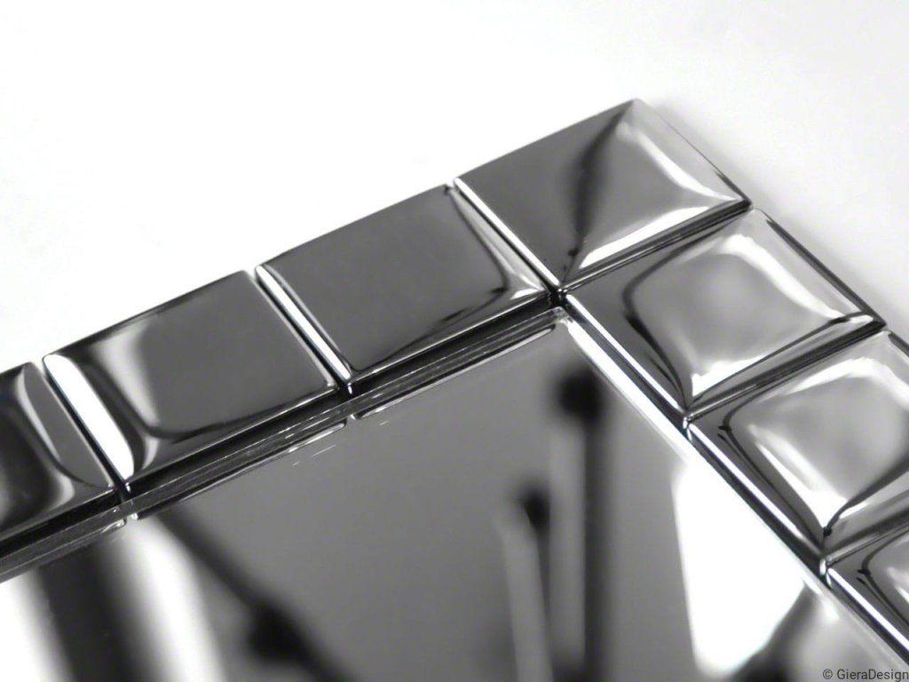Moderní nástěnné zrcadlo se výtečně hodí do koupelny. Rám je vyroben ze skleněných zrcadlových kamenů v originálním tvaru (48 x 48 mm). Zrcadlo je zajištěno teflonem, který ho chrání před korozivním účinkům vlhkosti - vhodné do koupelny. Zrcadlo lze zavěsit horizontálně i vertikálně. Zrcadlo se zhotovuje na zakázku, je možné vyrobit i jiný rozměr. Zrcadla jsou vyrobena z těch nejkvalitnějších belgických zrcadel s vysokou propustností a leskem. Broušení a leštění hran je prováděno na kvalitních italských strojích pro zpracování skla.Doplňkové parametry