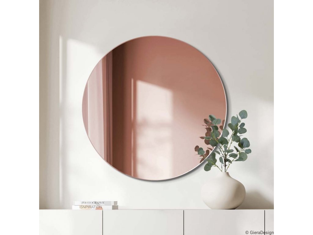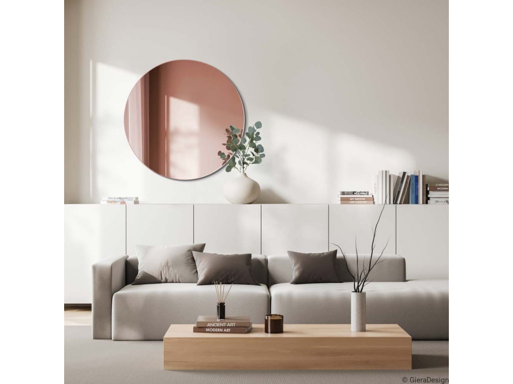 Kulaté zrcadlo v měděné barvě. Barevná zrcadla jsou v současnosti hitem v interiérech, jsou skvělým doplňkem každého zařízení a stávají se originální dekorací.