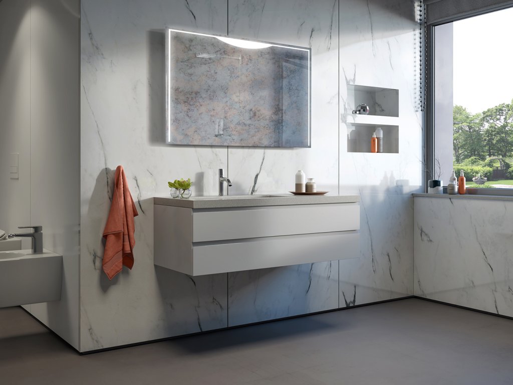 To zajišťuje pohodlné provádění každodenních procedur, jako je holení a líčení. Model Selene byl vyroben z nejkvalitnějších belgických tabulí, které se vyznačují vysokou transparentností a leskem.