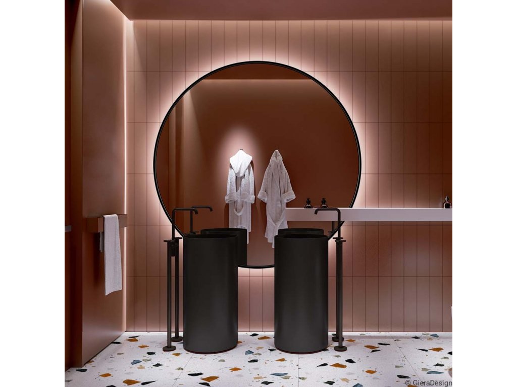 Pohodlné napájení pomocí vodotěsných konektorů - výstup kabelu uprostřed zrcadla.