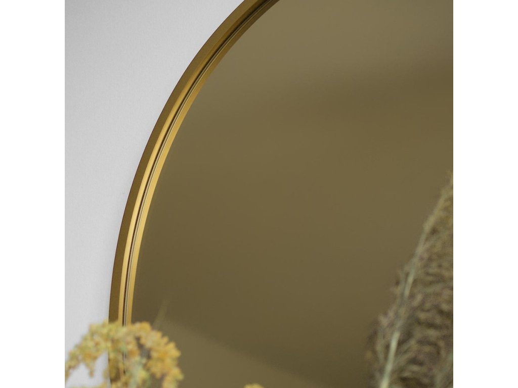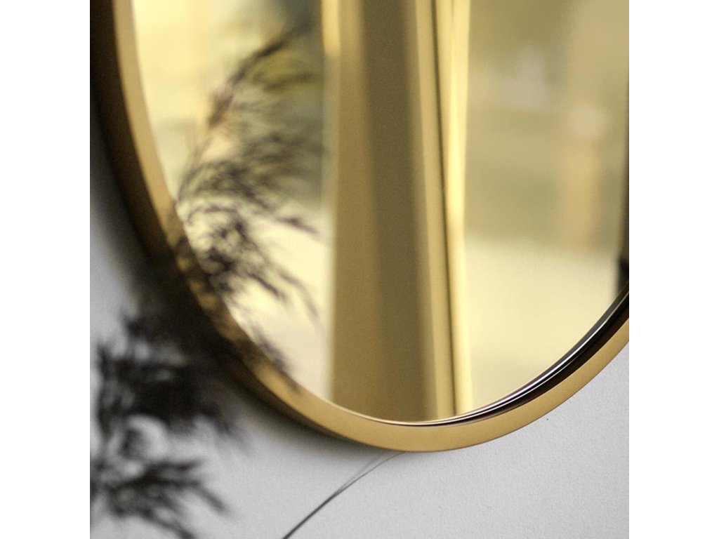 Zlaté zrcadlo se zlatou zrcadlovou tabulí se hodí pro skandinávské, moderní i eklektické interiéry. Tenký rám je pouze 11 mm, okraje skleněné tabule jsou odkryté a leštěné, díky čemuž se při kontaktu s rámem vytváří krásný záblesk. Rám i zrcadlová plocha jsou kompletně v zlatém provedení. Rám je vyroben z MDF desky pokryté odolným dvousložkovým metalickým polyuretanovým lakem. Výztužná fólie za samotným zrcadlem zajistí udržení částí zrcadla v rámu v případě rozbití. Zrcadlo se zhotovuje na zakázku, je možné vyrobit i jiný rozměr.