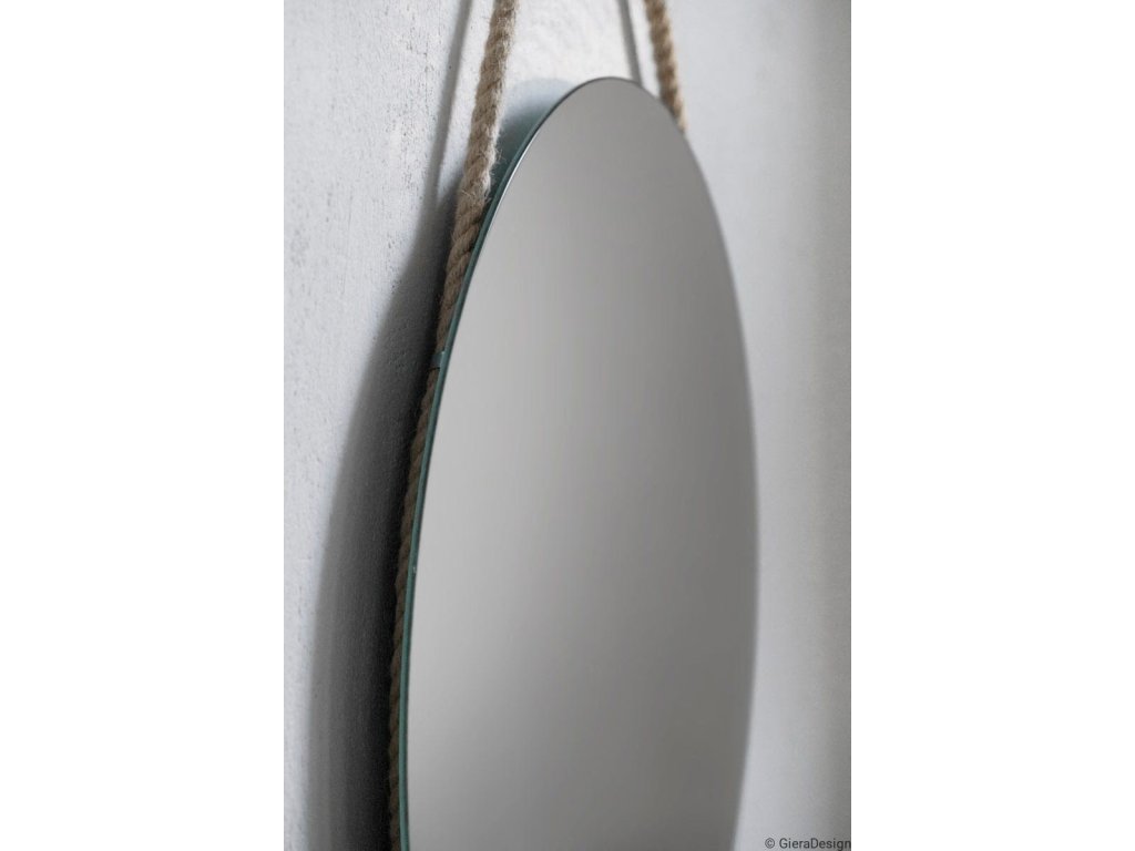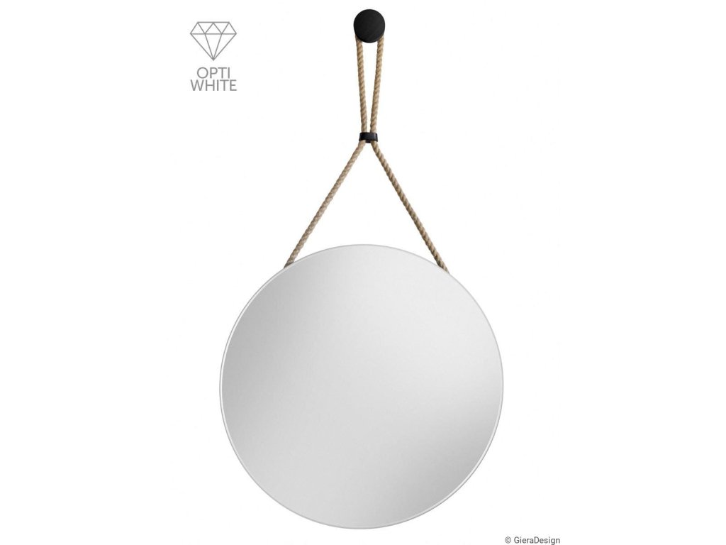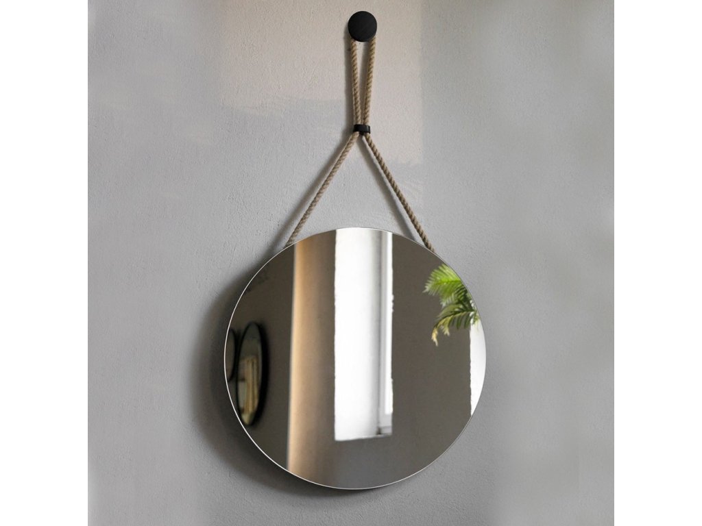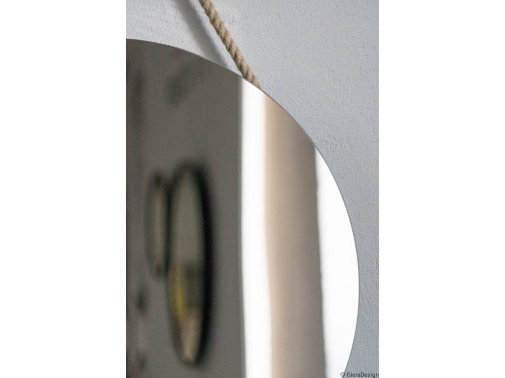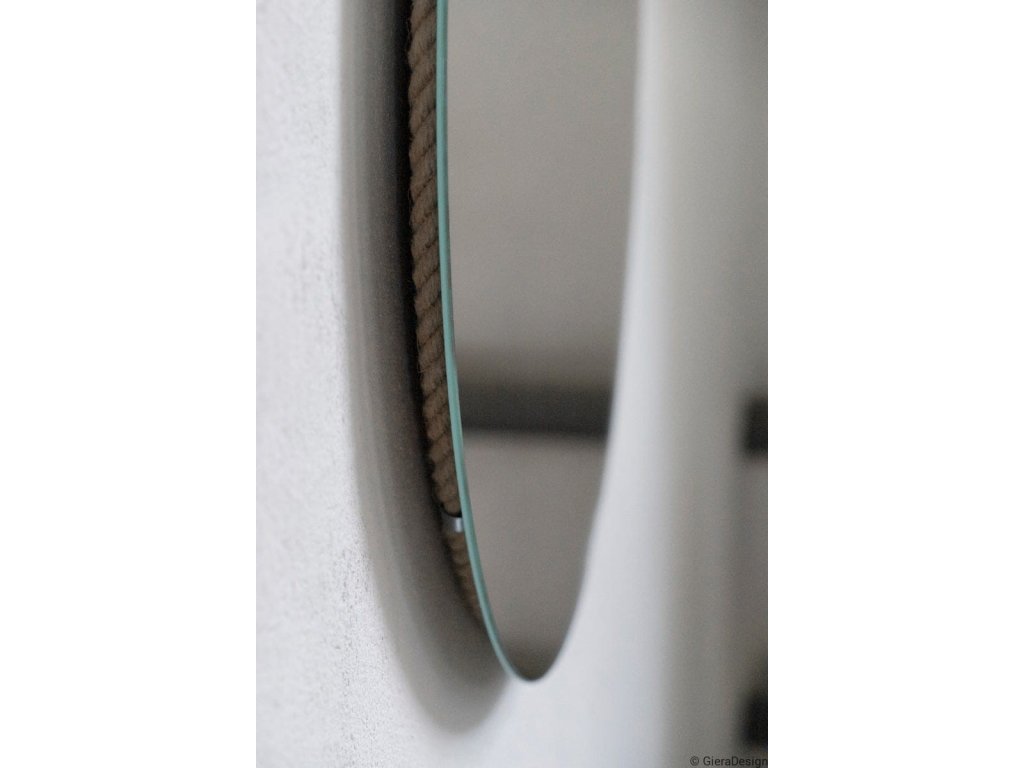 Originální kulaté nástěnné zrcadlo zavěšené na jutovém laně s dekorativním opletením. Jednoduché, ale poutavé zrcadlo zapadá do současných trendů, kde nejvíce trendy jsou přírodní a ekologické materiály. Jutové lano má přírodní barvu, je možné regulovat jeho délku. Tloušťka lana je 15 mm. Věšák je v černé barvě. Zrcadlo se ideálně se hodí do skandinávského, ekologického či wabi-sabi stylu. Zabezpečené je vrstvou teflonu, která ho chrání před korozivními účinky vlhkosti - vhodné do koupelny. Zrcadlo je vyrobeno z nejkvalitnějších zrcadel Opti white. Jde o mimořádně čisté, super bílé zrcadlo s mnohem vyšší transparentností skla. Zrcadla Opti white mají nižší obsah železa, což umožňuje odstranit typické zelenkavé zabarvení skla. Zrcadla jsou téměř bezbarvé, mají mnohem vyšší propustnost světla, zajišťují věrnost barev. Mají jasnější odraz a určitě světlejší okraje. Zrcadlo se zhotovuje na zakázku, je možné vyrobit i jiný rozměr. Zrcadla jsou vyrobeny z těch nejkvalitnějších belgických zrcadel s vysokou propustností a leskem. Broušení a leštění hran je prováděno na kvalitních italských strojích pro zpracování skla.Doplňkové parametry