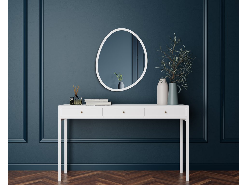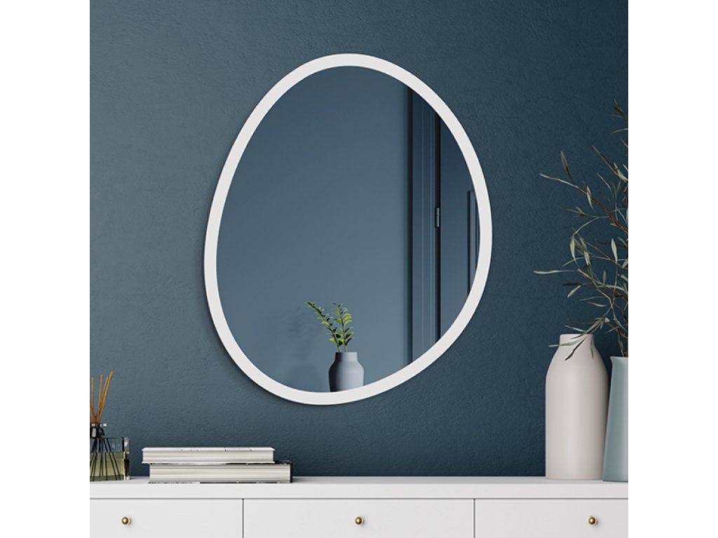 Zrcadlová tabule je umístěna v tenkém rámu, který může být vyroben z dvojitě olejované překližky z tvrdého dřeva nebo voděodolné MDF desky lakované vícesložkovým lakem. Vzadu jsou věšáky. Zrcadlo je vyrobeno na objednávku.
