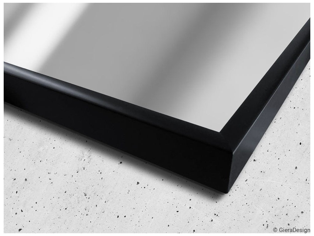 Jednoduché nástěnné zrcadlo s dřevěným rámem v černé barvě. Skvělá volba pro lidi, kteří ocení jednoduchost v interiérech. Perfektně se hodí do obývacího pokoje, koupelny, ložnice nebo předsíně v skandinávském, moderním nebo průmyslovém stylu. Rám je vyroben ze dřeva lakovaného černou barvou. Je chráněno před korozivním účinkem vlhkosti - vhodné i do koupelny. V zadní části zrcadla jsou namontovány úchytky na zavěšení. Zrcadla jsou vyrobeny z těch nejkvalitnějších belgických zrcadel s vysokou propustností a leskem. Broušení a leštění hran je prováděno na kvalitních italských strojích pro zpracování skla.Doplňkové parametry