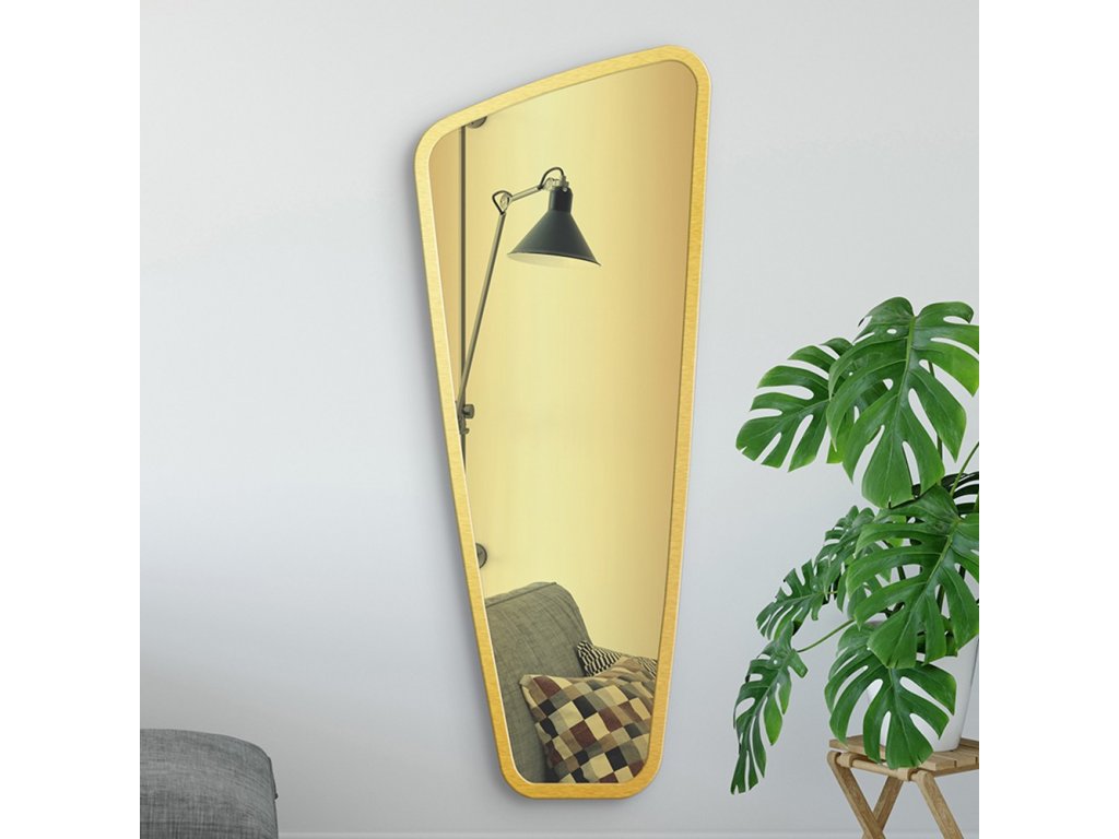 Zrcadlo Vitrum je model s netradičním designem, který bude dokonalým dekorativním prvkem do obývacího pokoje, ložnice nebo haly. Zlatá zrcadlová tabule je umístěna v tenkém rámu, který je vyroben z vodotěsné desky MDF natřené vícesložkovým lakem.