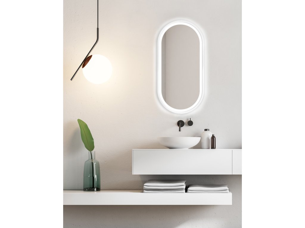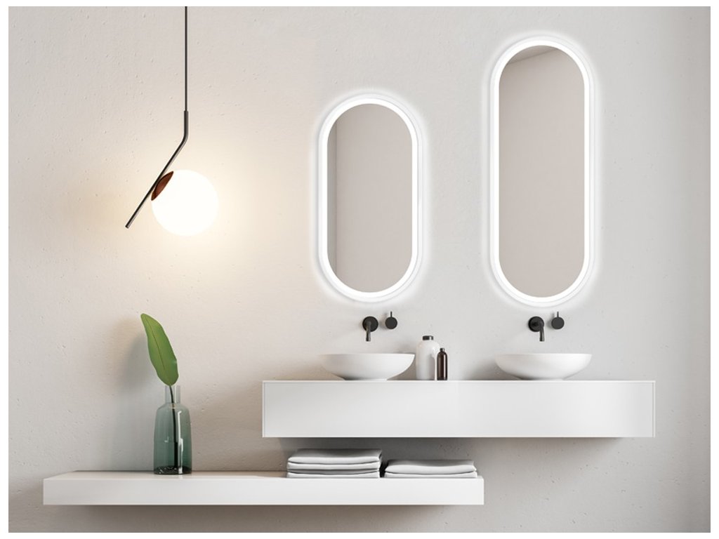 Tabulka je umístěna v rámu, který může být vyroben z překližky z tvrdého dřeva s dvojitým olejovým nátěrem nebo z vodotěsné MDF desky natřené vícesložkovým lakem. LED podsvícení činí zrcadlo ještě více unikátním, protože dodá interiéru jedinečnou atmosféru. Vzadu jsou věšáky.